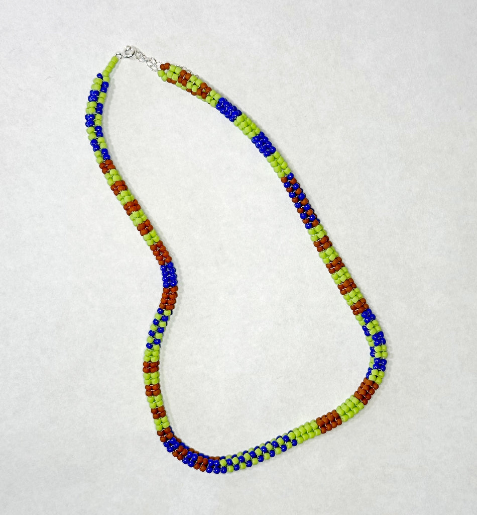 Fall: lime green, brown, and cobalt blue Japanese glass beads