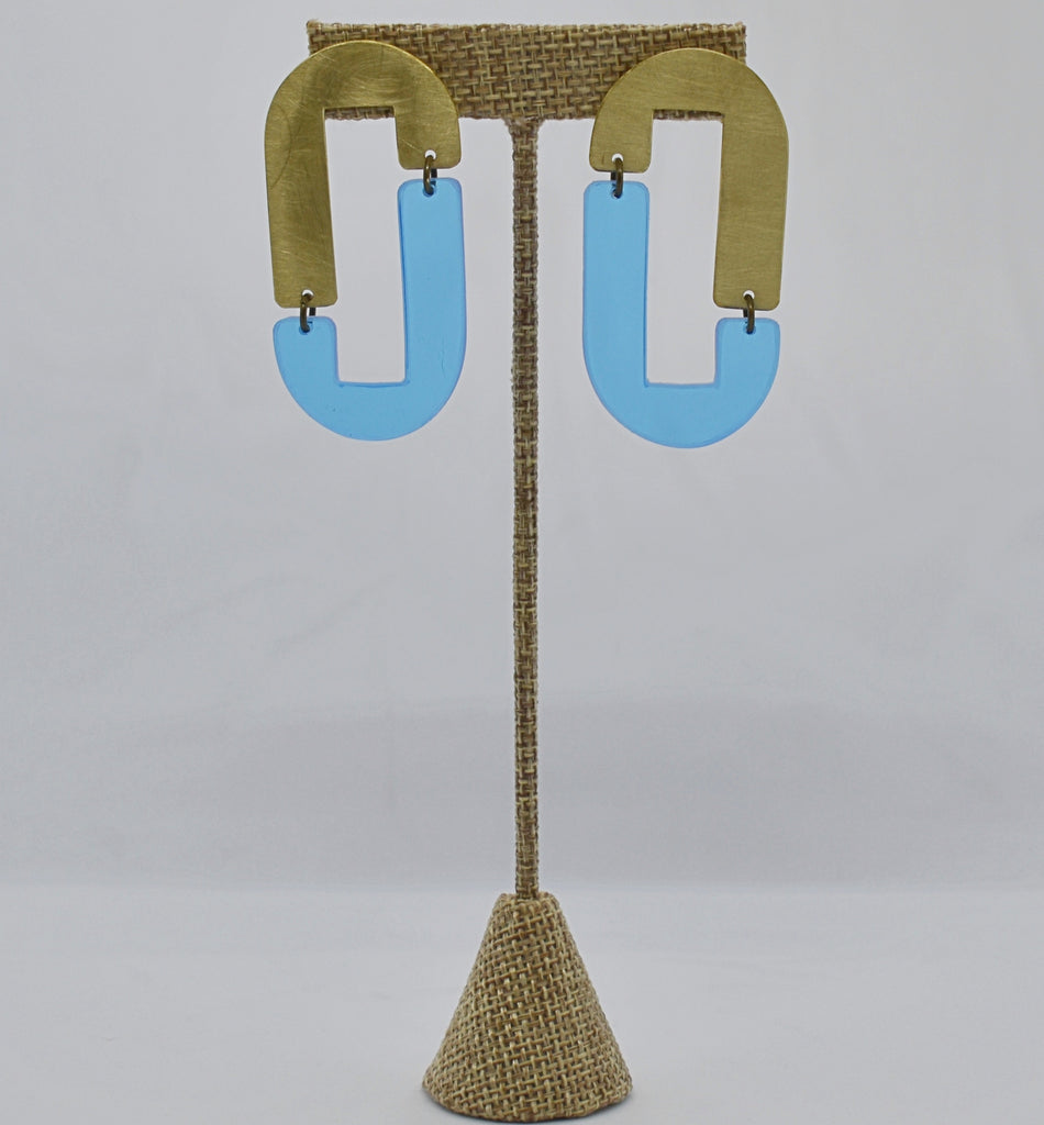 Everyday statement earrings playing with balance and movement. Brushed brass and acrylic with sterling silver posts. Total length 2.25".
