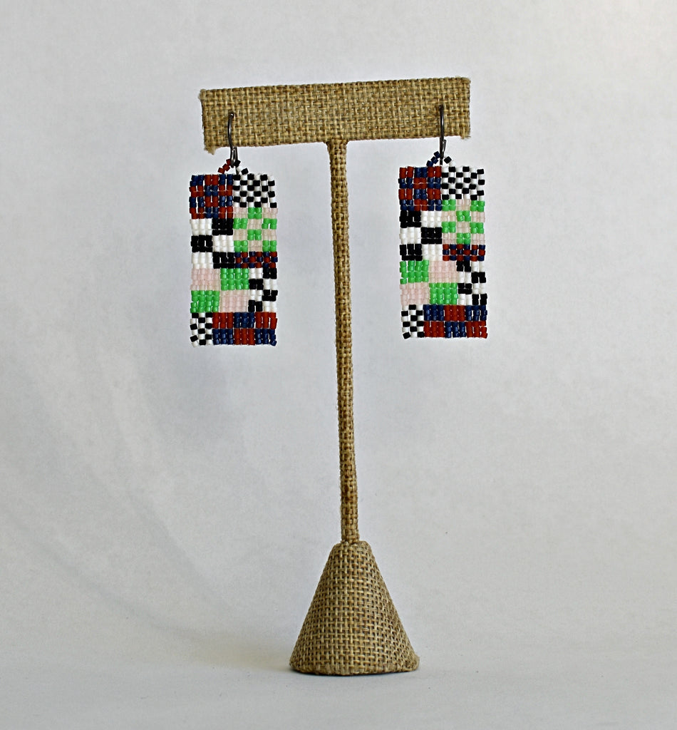A mini version the popular memphis earrings! Beaded earrings with mixed checkered pattern inspired by Memphis design on niobium (hypoallergenic) ear wires. Black, white, navy, maroon, green and soft pink colored beads. Total length including ear wires is 2". Check out all the fun color variations and don't hesitate to reach out if you'd like a custom colorway.