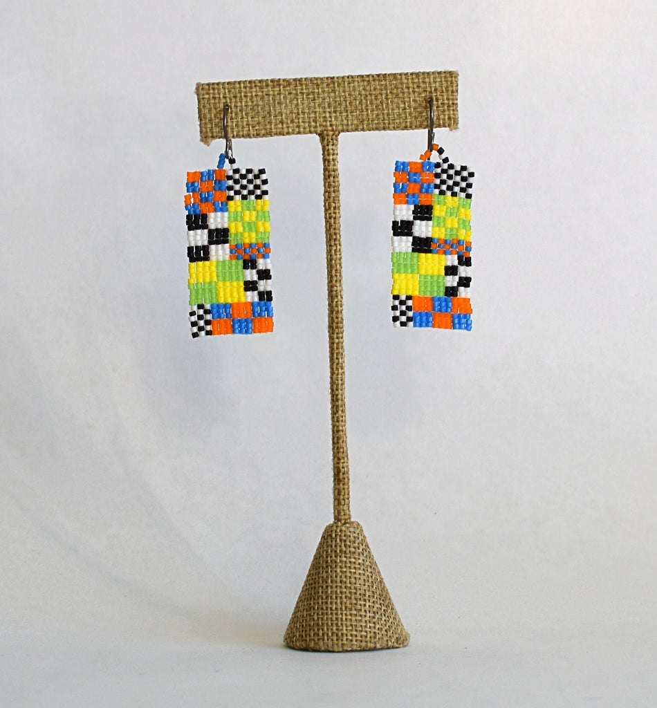 A mini version the popular memphis earrings! Beaded earrings with mixed checkered pattern inspired by Memphis design on niobium (hypoallergenic) ear wires. Black, white, blue, orange, yellow and lime green colored beads. Total length including ear wires is 2". Check out all the fun color variations and don't hesitate to reach out if you'd like a custom colorway.