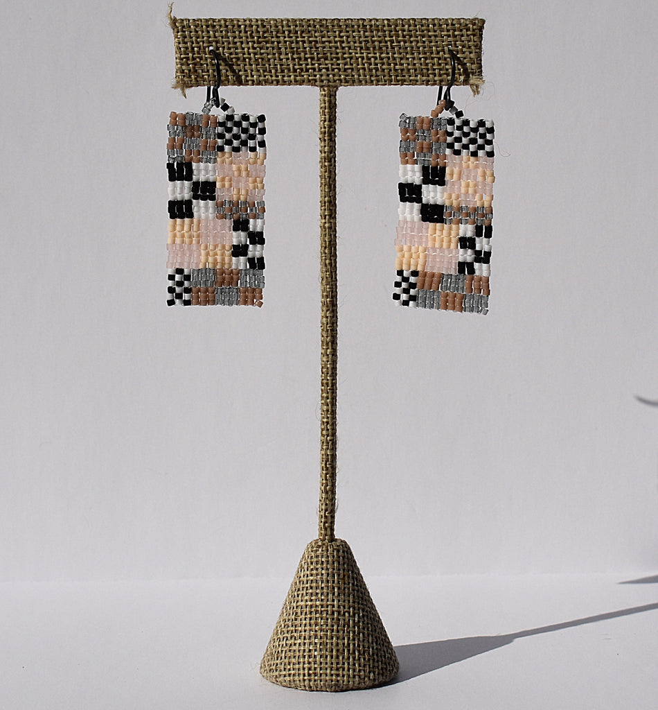A mini version the popular memphis earrings! Beaded earrings with mixed checkered pattern inspired by Memphis design on niobium (hypoallergenic) ear wires. Black, white, grey, beige, soft pink and creme colored beads. Total length including ear wires is 2". Check out all the fun color variations and don't hesitate to reach out if you'd like a custom colorway.