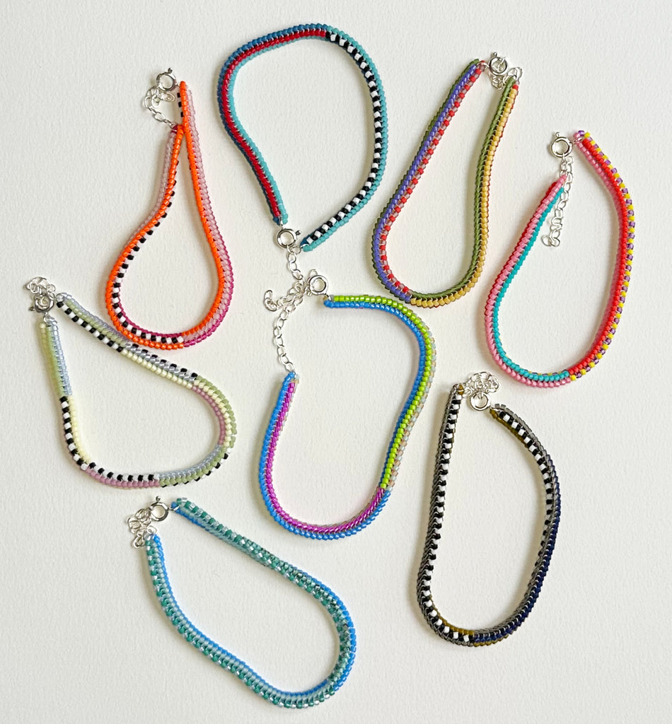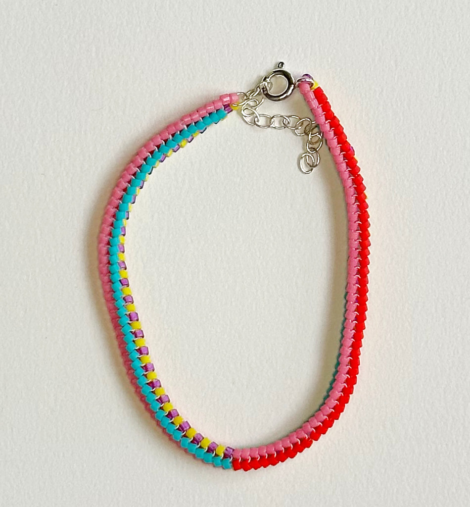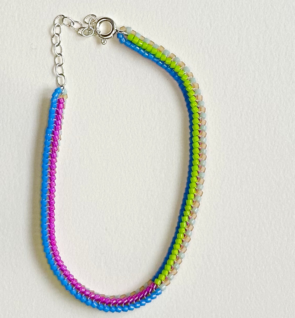 Neon: stripes pattern with magenta, lime green, cerulean, light blue and light amber colored beads