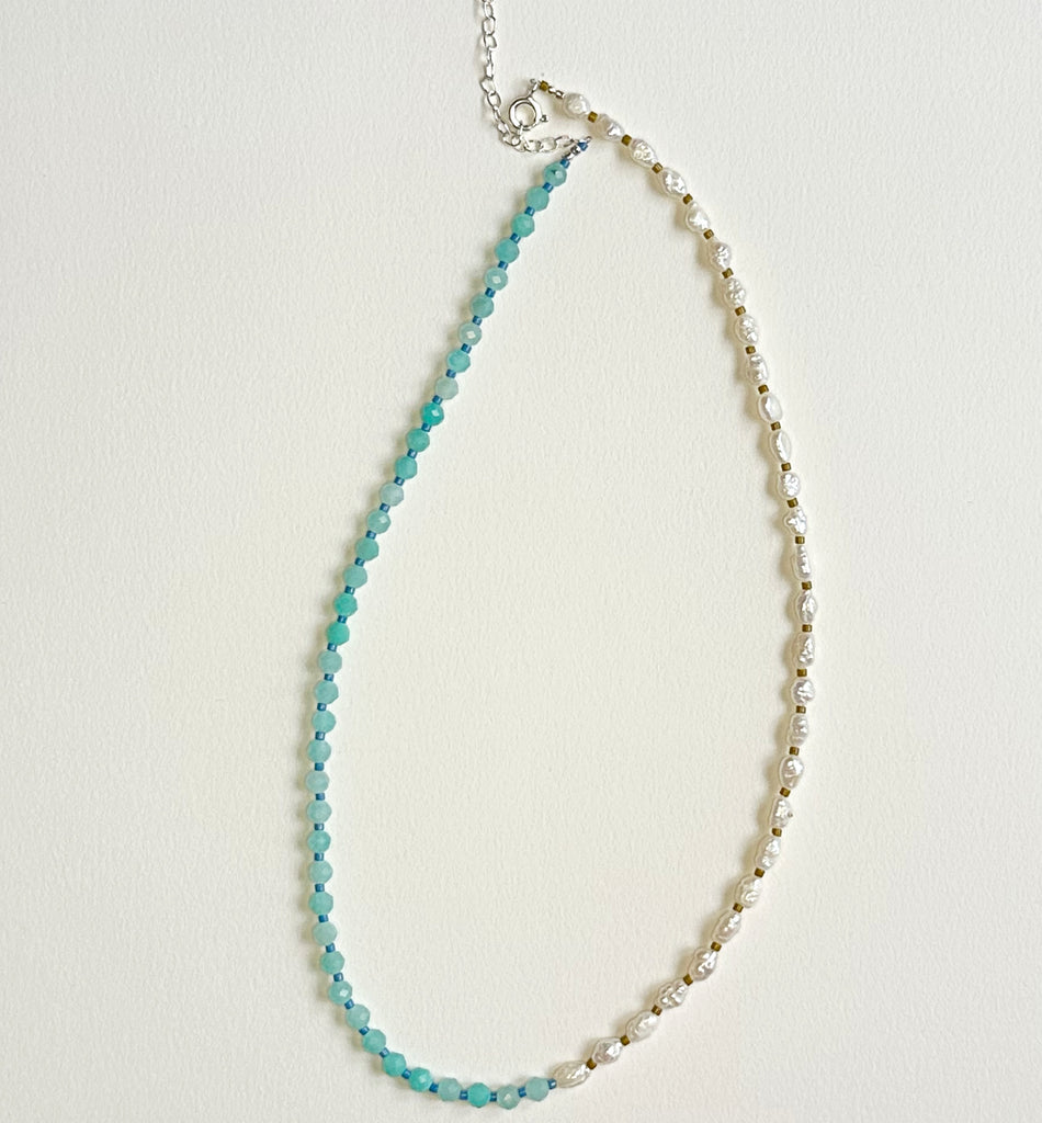 Make a simple statement with and mix of pearls and stones. 16" long with 2" chain extender with sterling silver spring ring clasp.