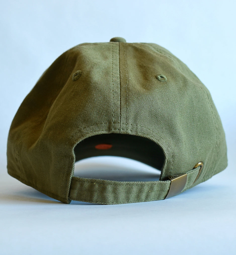 Awesome olive green dad hat blank personalized with a hand beaded front band. Adjustable back band. 100% cotton hat.
