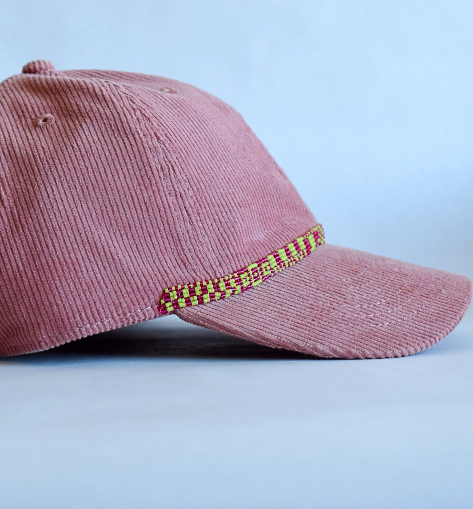 Awesome mauve pink dad hat blank personalized with a hand beaded front band. Adjustable back band. 100% cotton hat.
