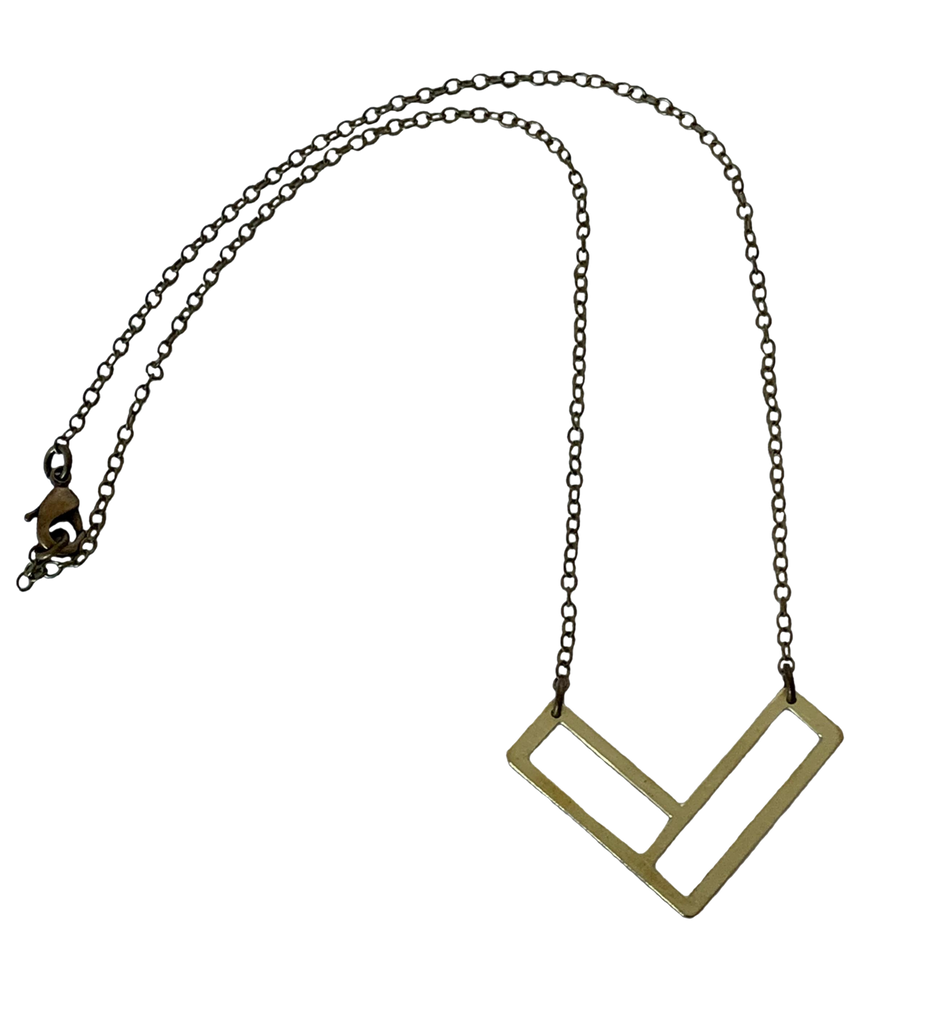 A mini version of the best selling Dolores Necklace! The simple herringbone pendant is great for everyday wear. Rock it solo or layer it with the Dolores Necklace. Satin finished brass on 16" brass chain with lobster claw closure.