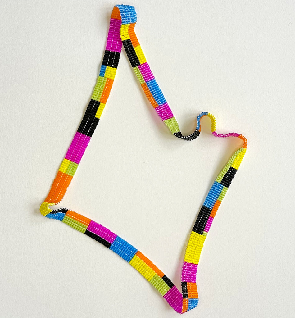 Bold Colorblock: colorblocked pattern with magenta, orange, cerulean, lime green, yellow and black colored beads.