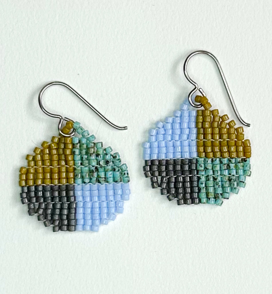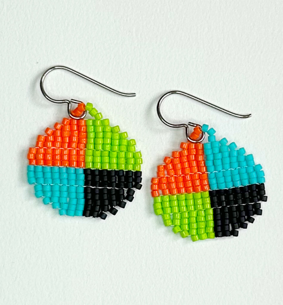 A great little pop of color for your ears.  Beaded earrings in circle shape on niobium (hypoallergenic) ear wires.  Total length including ear wires is 1.25".  Japanese glass seed beads.