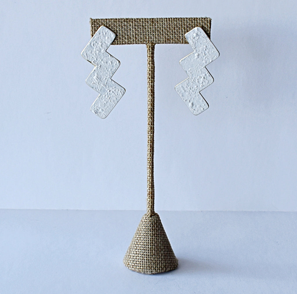 Colorful statement earrings that are light enough for everyday in a zig-zag shape.