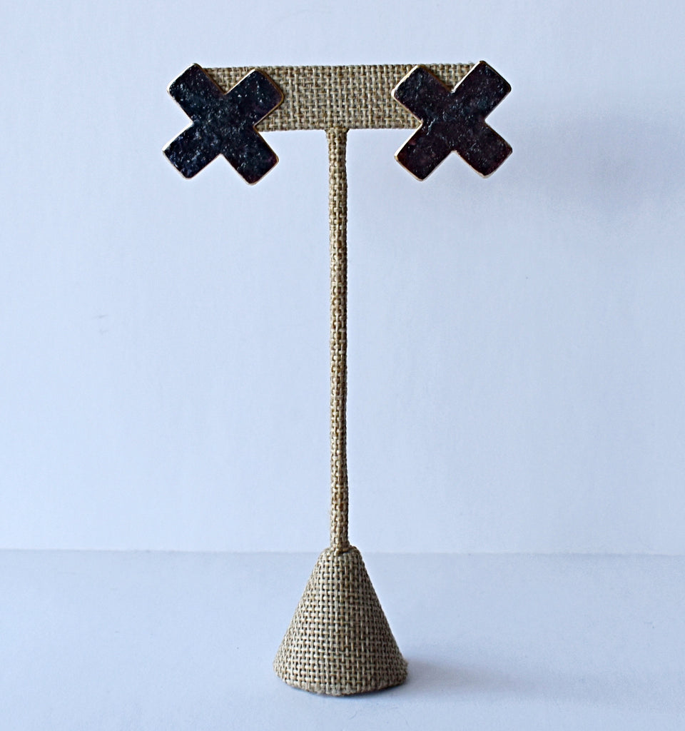 Colorful statement earrings that are light enough for everyday in fun x shape.