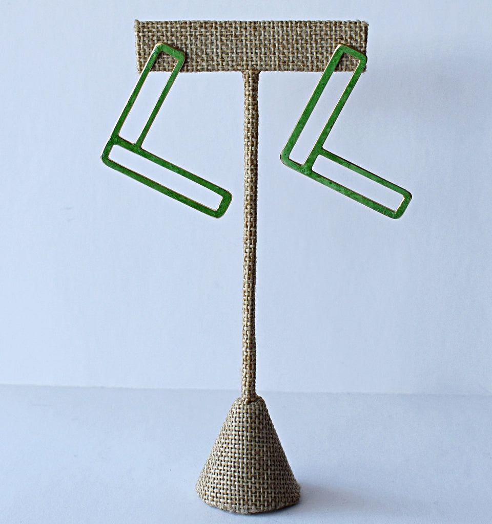 Acrylic paint on brass with sterling silver posts. Total length 2.25".