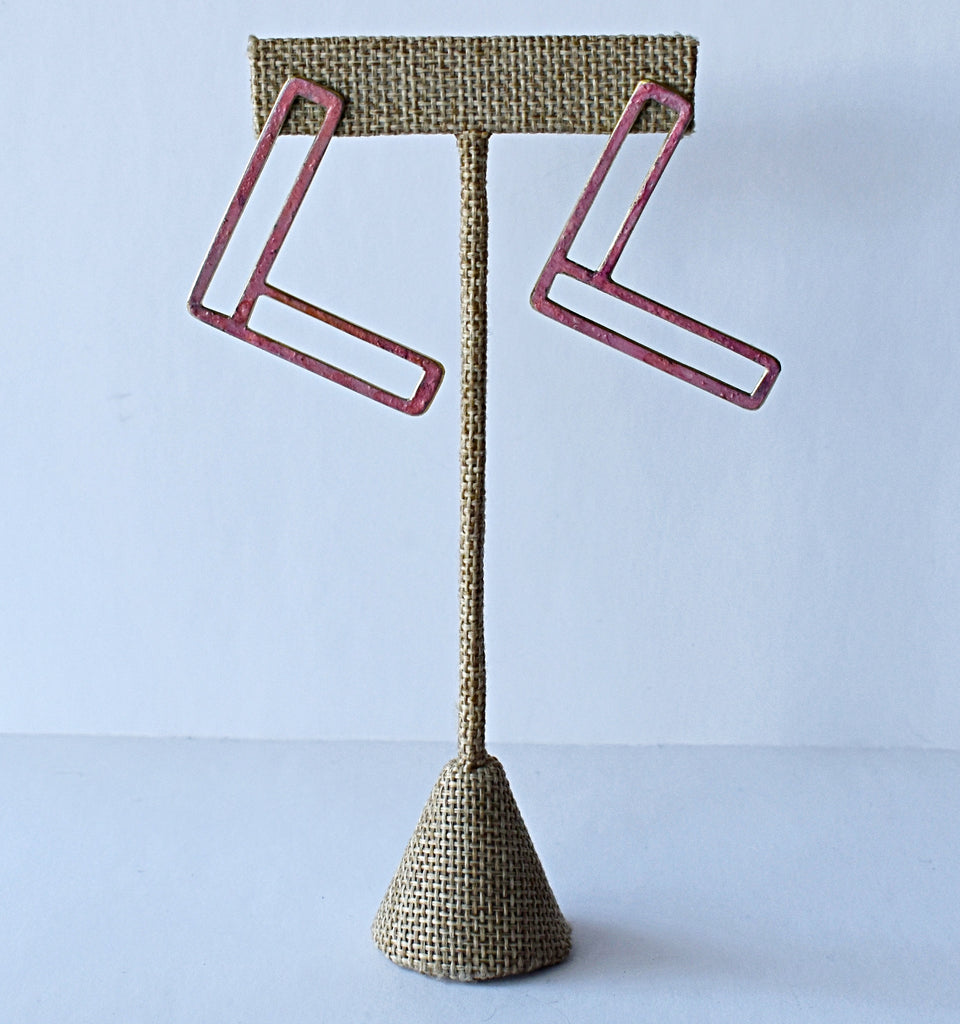 Acrylic paint on brass with sterling silver posts. Total length 2.25".