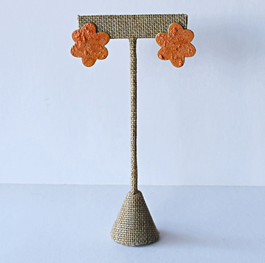 Acrylic paint on brass with sterling silver posts. Total length 1".