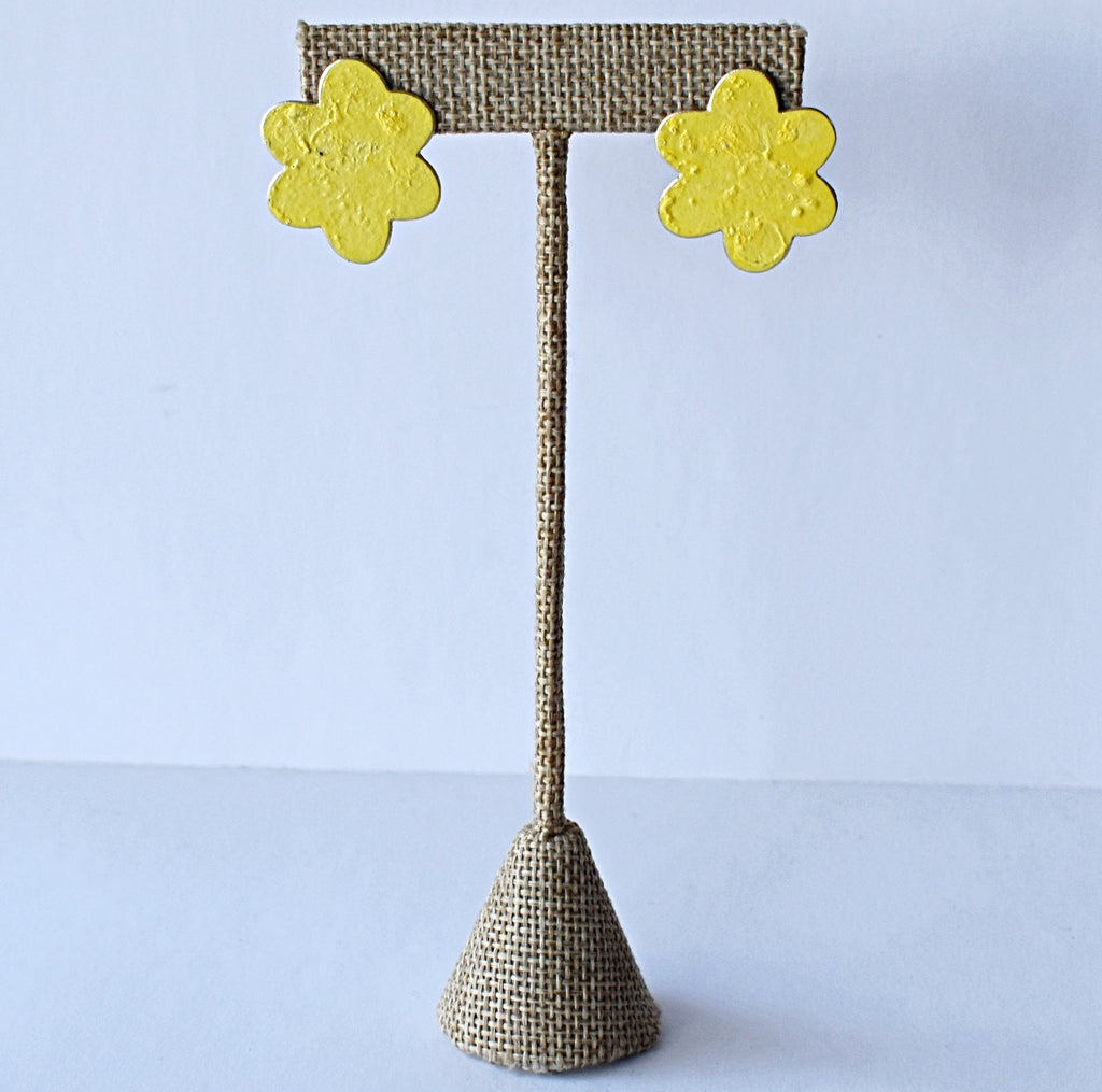 Acrylic paint on brass with sterling silver posts. Total length 1".