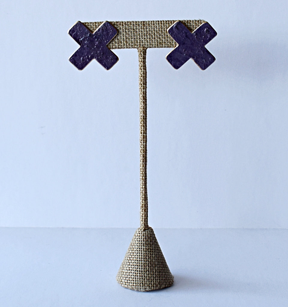 Colorful statement earrings that are light enough for everyday in fun x shape.